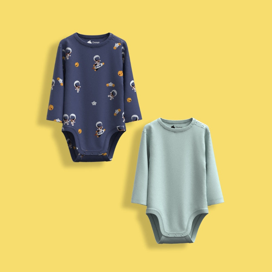 2 Pcs Full Sleeves Bodysuit | Space, Light Green
