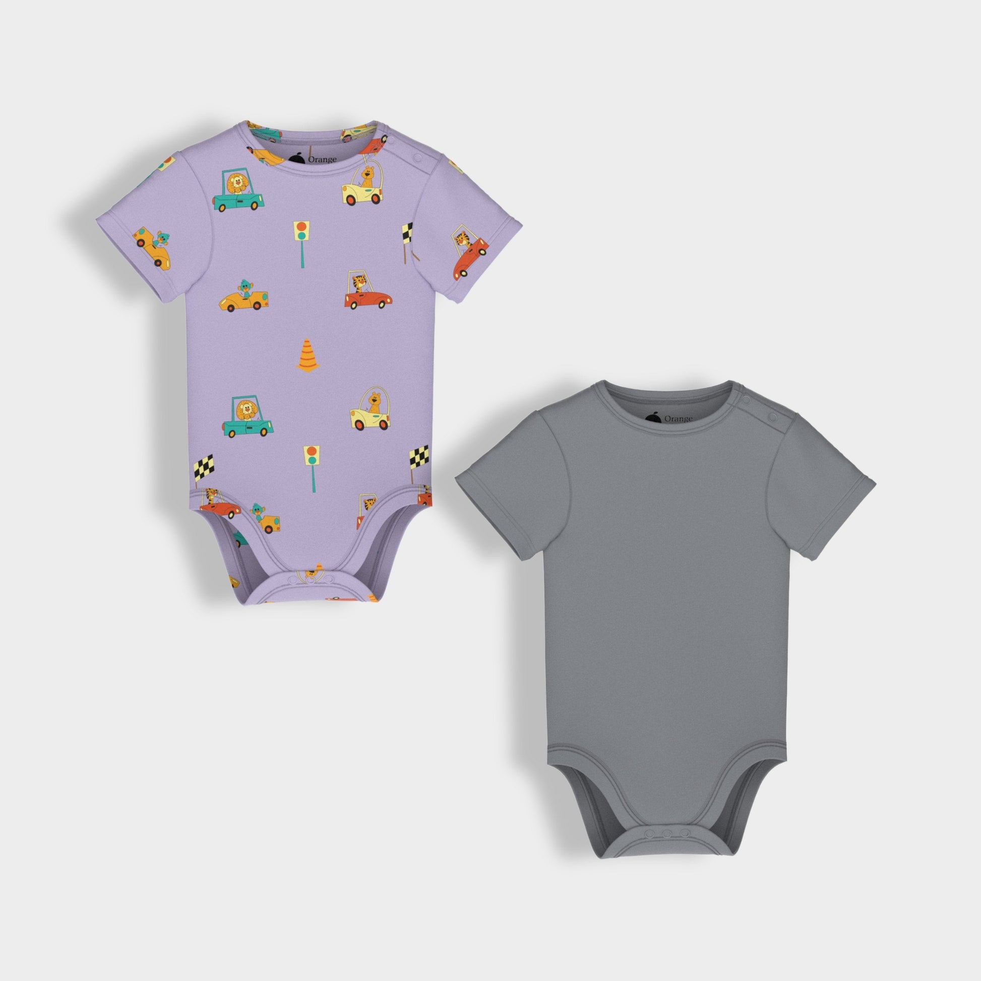 2 Pcs Half Sleeves Bodysuit | Cars, Grey