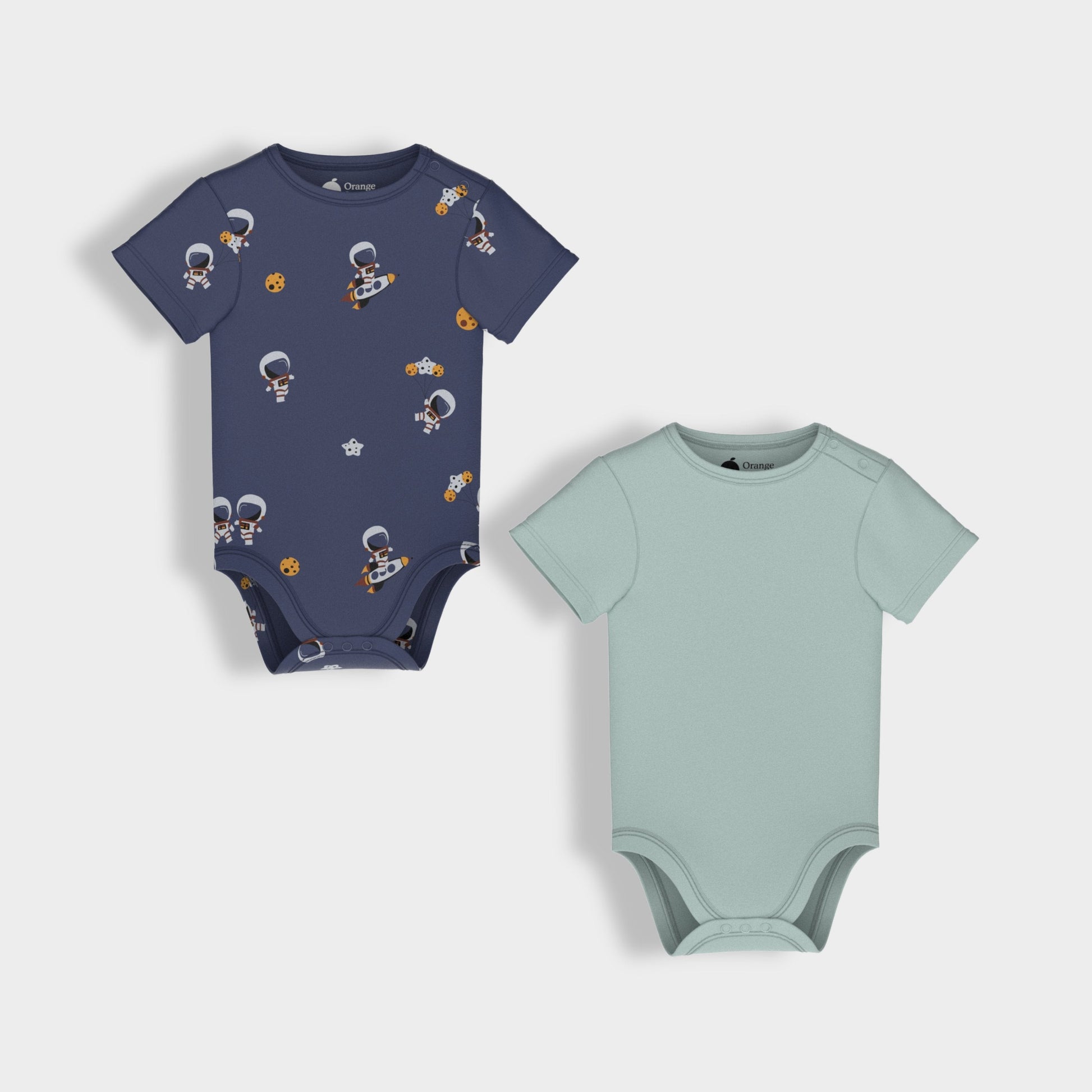 2 Pcs Half Sleeves Bodysuit | Space, Light Green