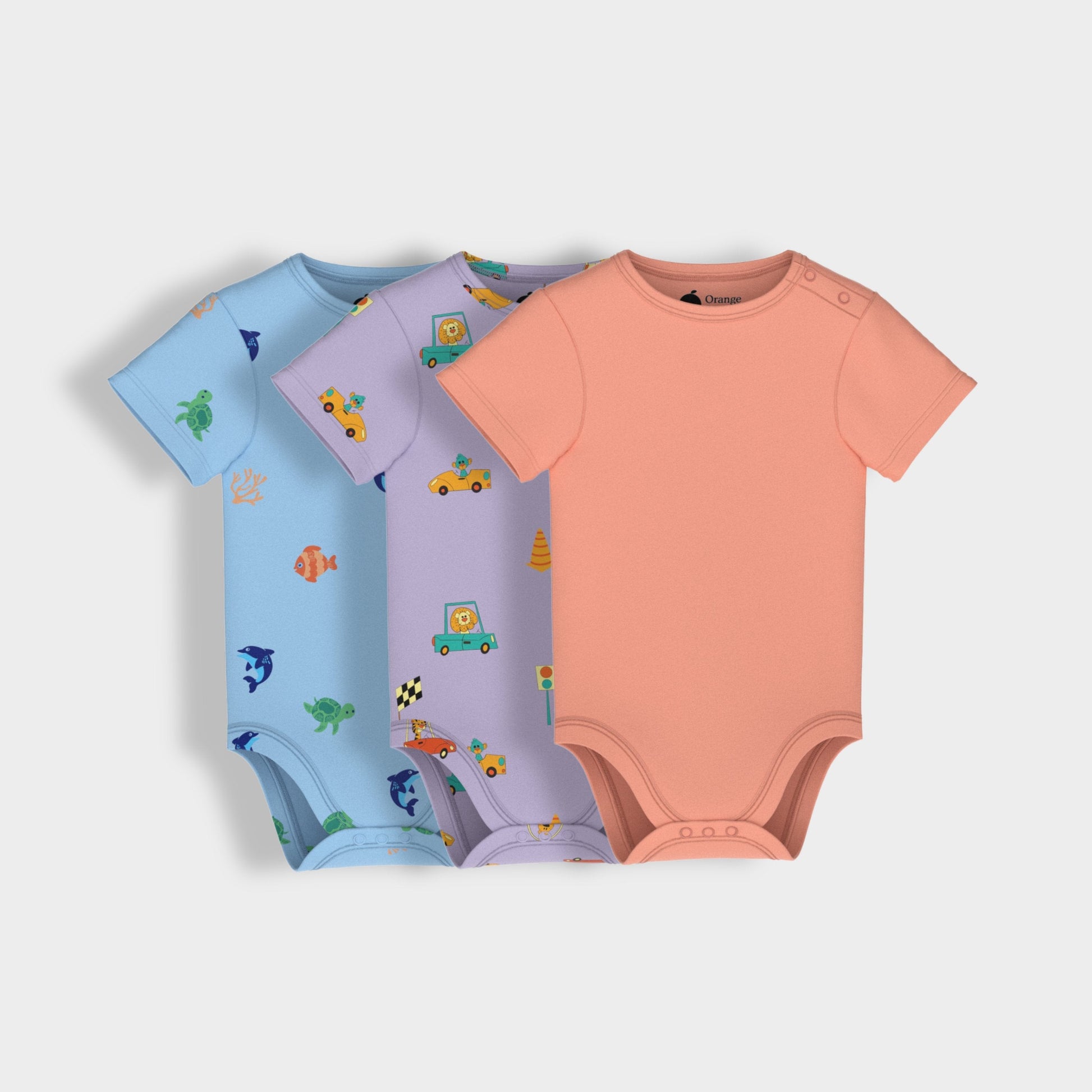 3 Pcs Half Sleeves Bodysuit | Underwater, Cars, Orange