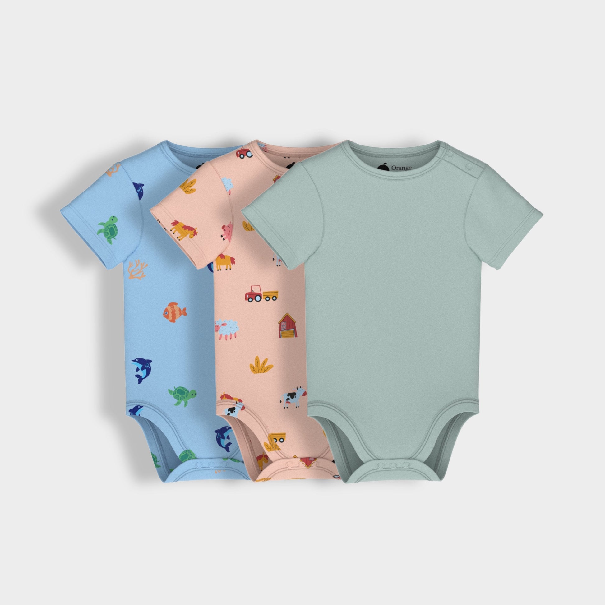 3 Pcs Half Sleeves Bodysuit | Underwater, Farm, Light Green