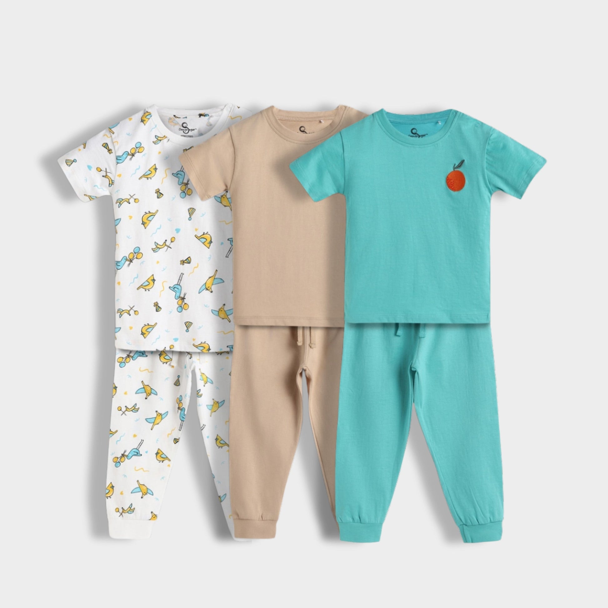 3 Pack Half Sleeves Unisex Co-ord Set | Bird, Aqua Orange & Truck