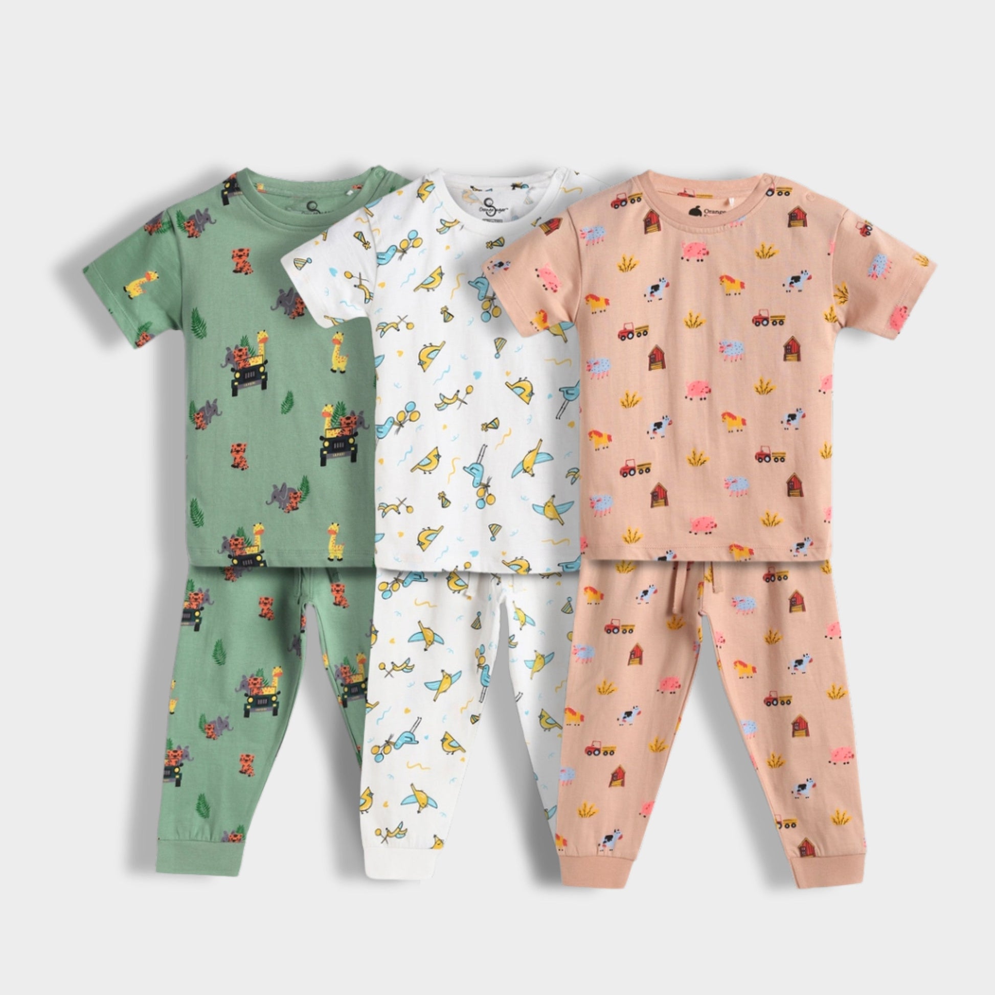 3 Pack Half Sleeves Unisex Co-ord Set | Bird, Jungle & Farm