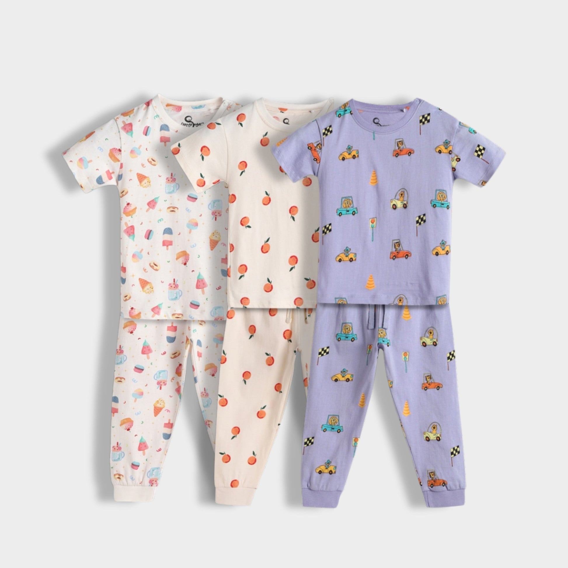 3 Pack Half Sleeves Unisex Co-ord Set | Frosty, Orange & Cars