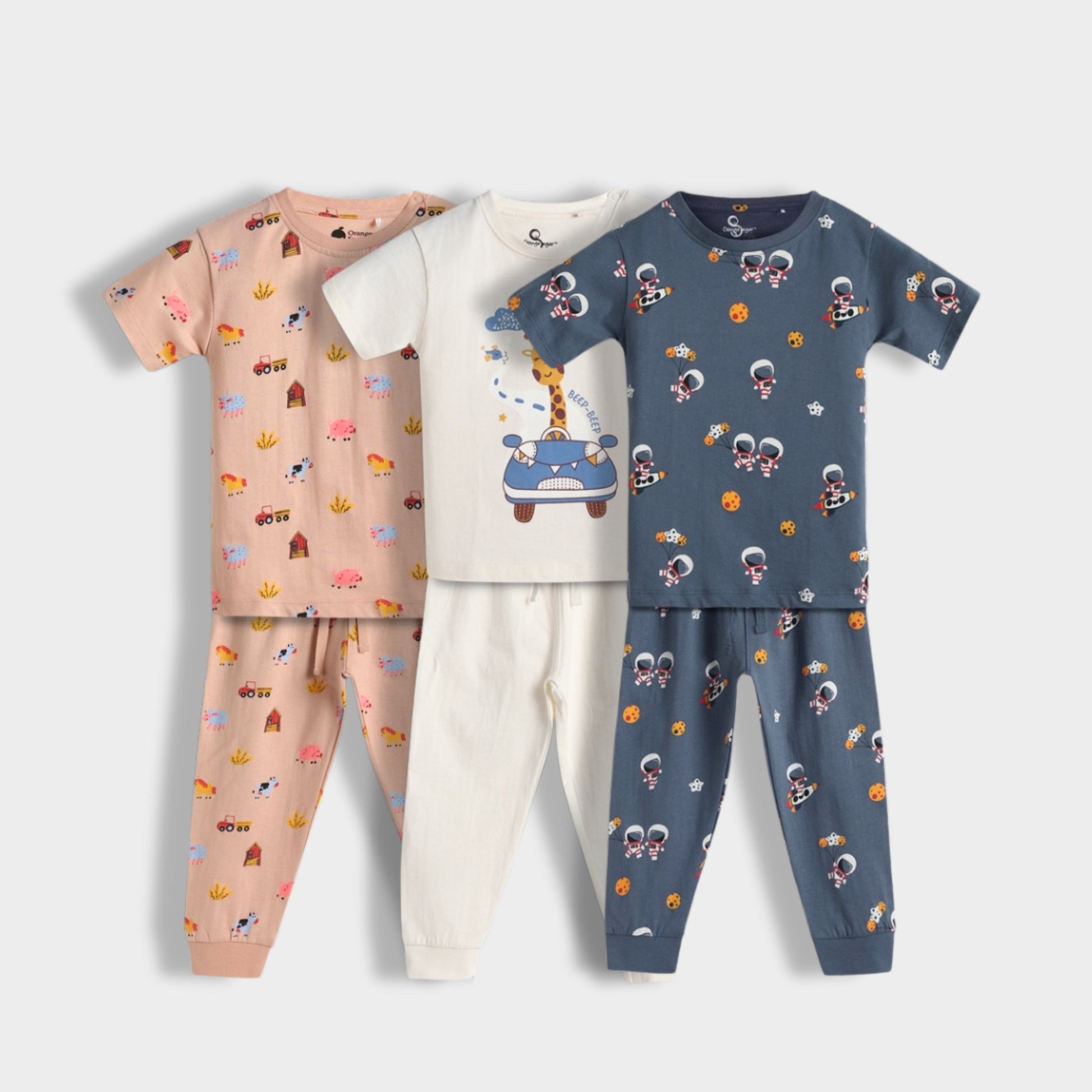 3 Pack Half Sleeves Unisex Co-ord Set | Giraffe Beep, Farm, Space