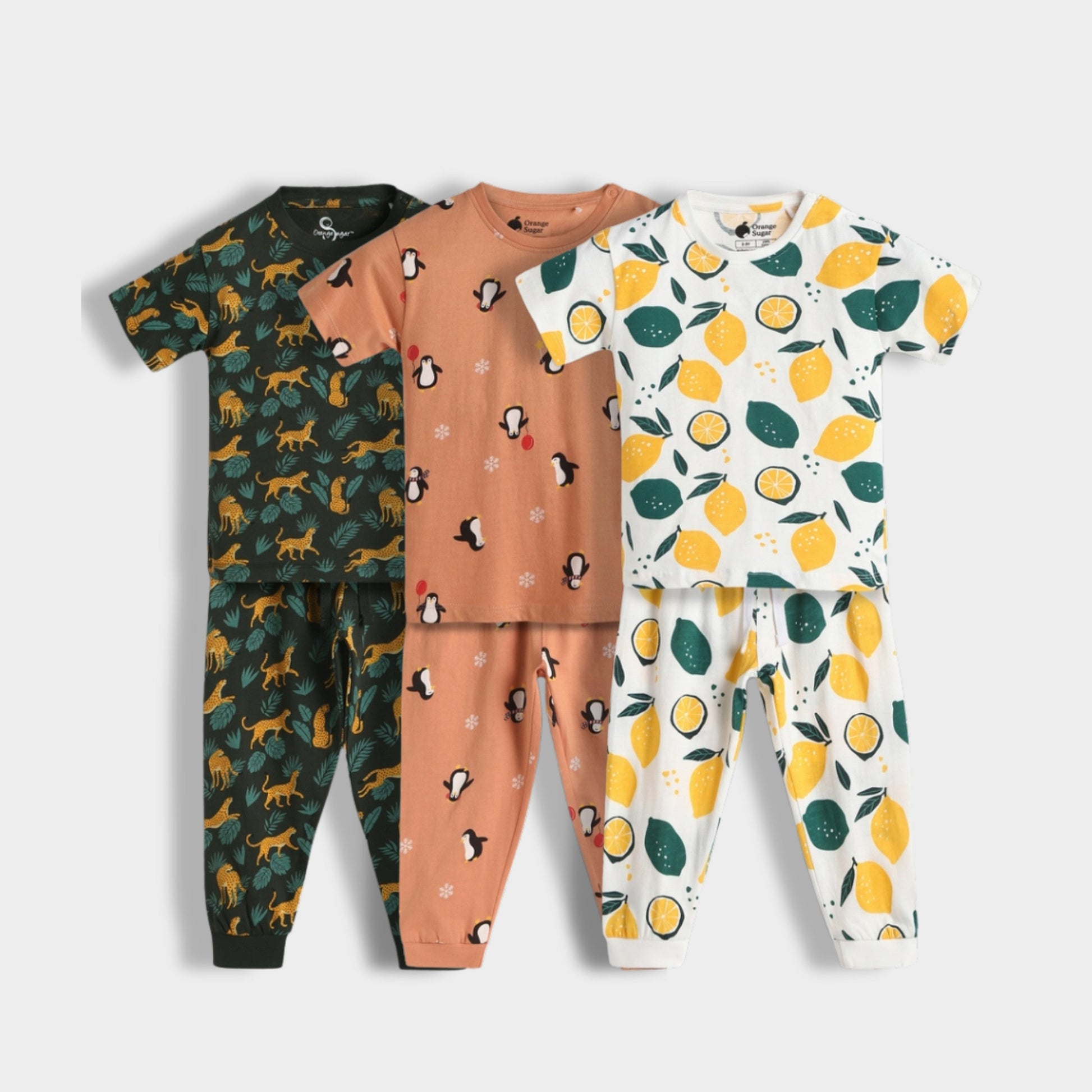 3 Pack Half Sleeves Unisex Co-ord Set | Cheetah, Lemon & Penguin Chill