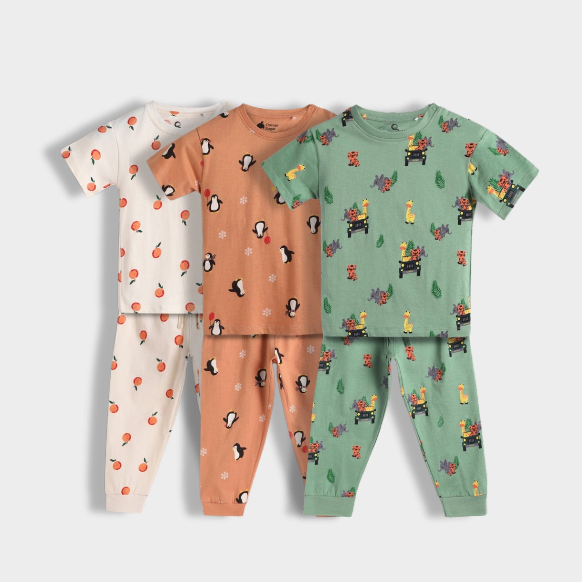 3 Pack Half Sleeves Unisex Co-ord Set | Jungle, Oranges & Penguin Chill