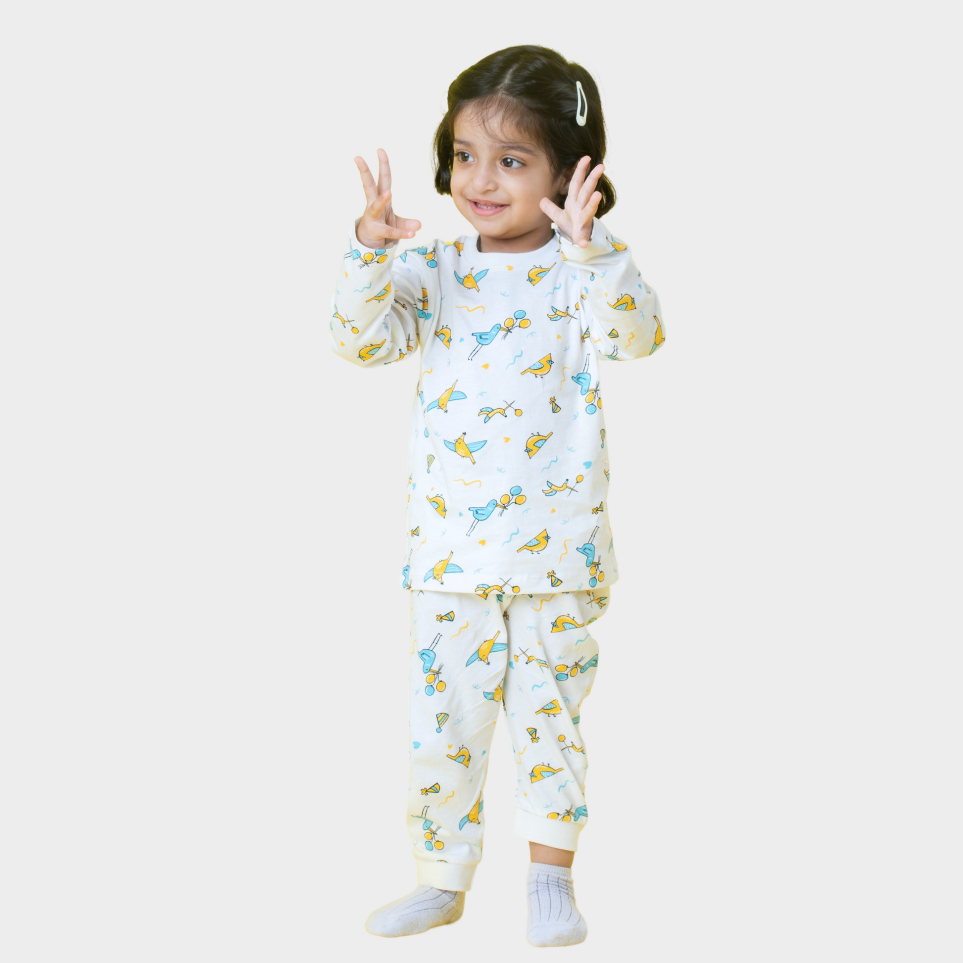 Vibrant Design: Available in enchanting white color with Bird Day pattern, making your little one stand out in playful sophistication.