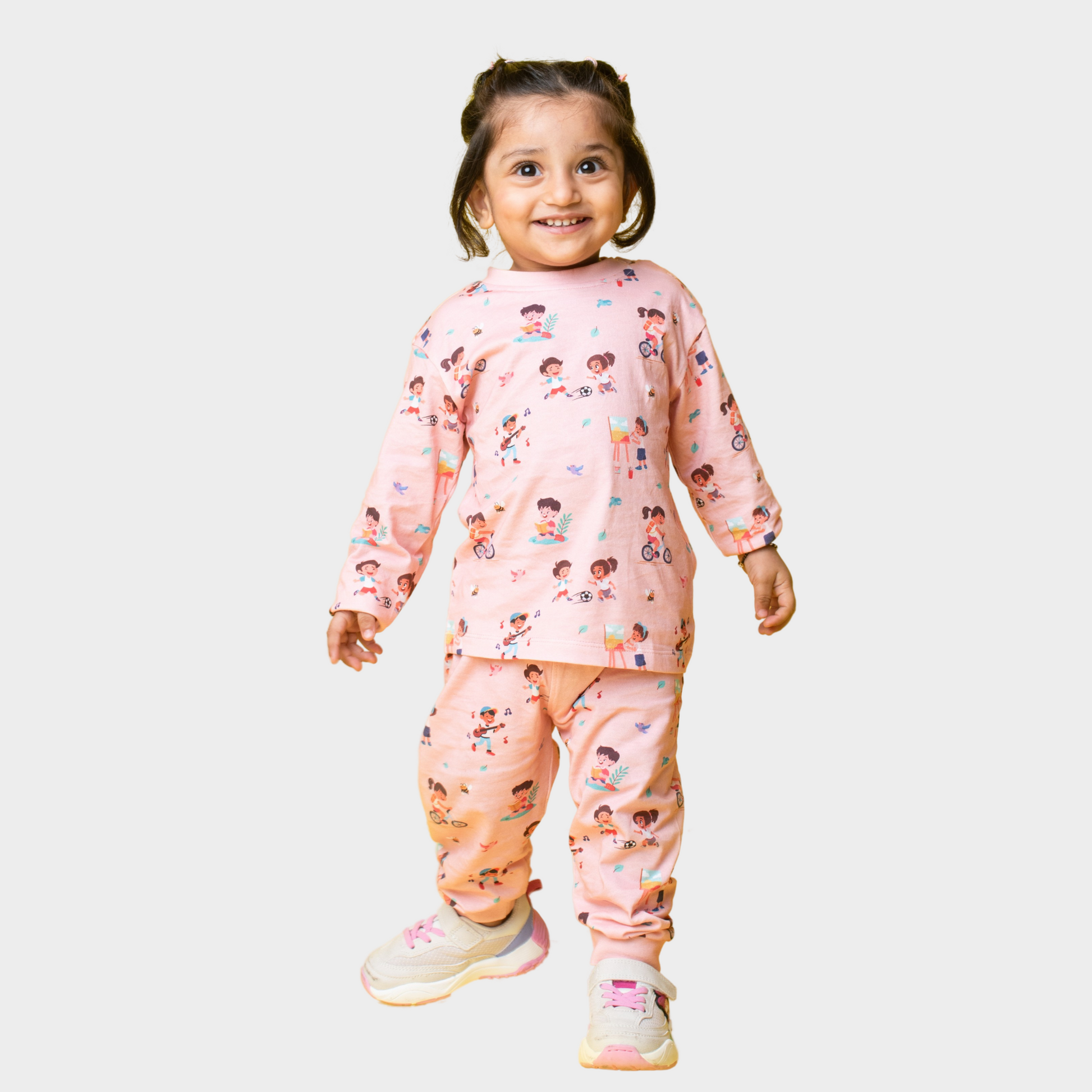 Wrap your little ones in unrivaled comfort and style with our delightful kids wear fun Full Sleeves T-Shirt & Pant Set, perfect for playful days and cozy nights.