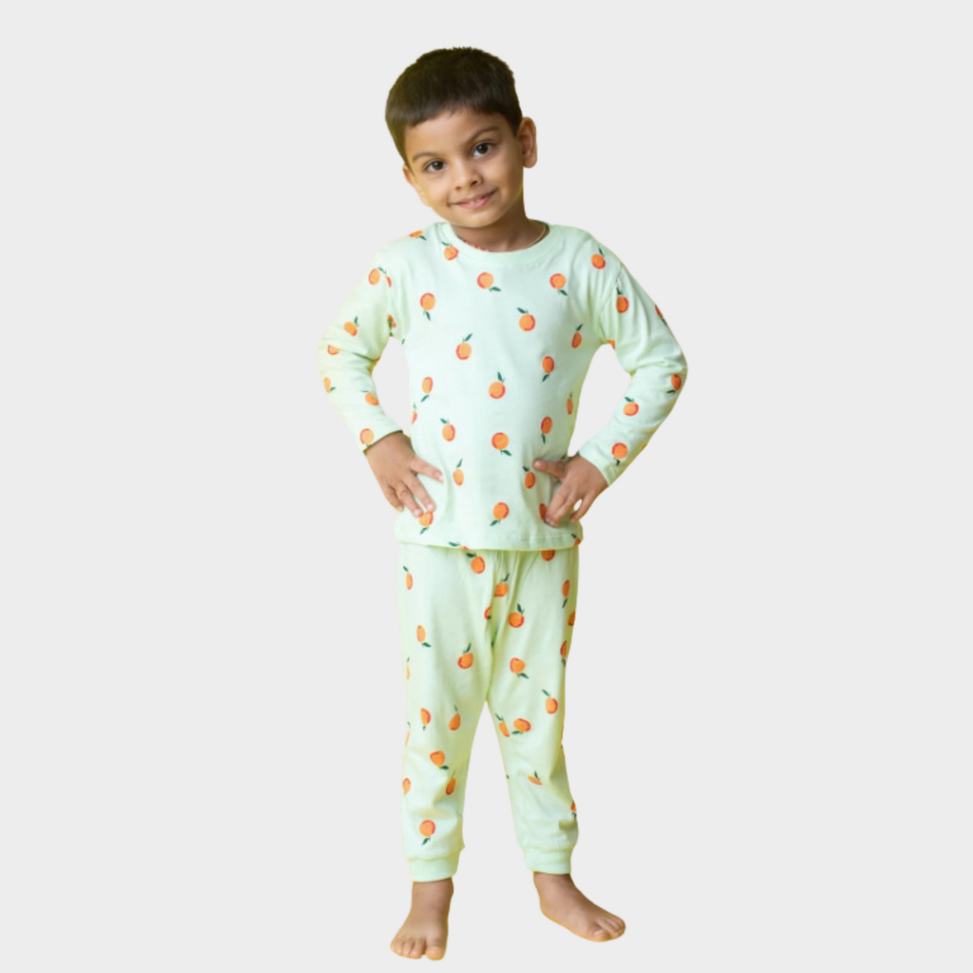 Vibrant Design: Available in enchanting pista-green color with Orange Bliss pattern, making your little one stand out in playful sophistication.